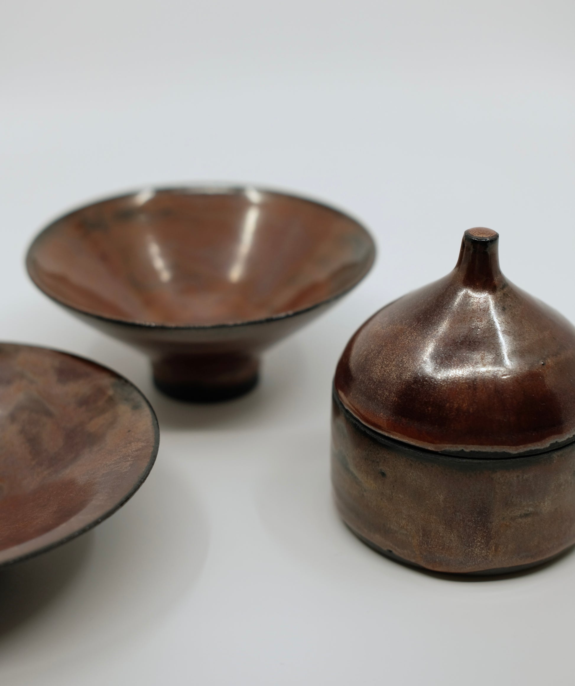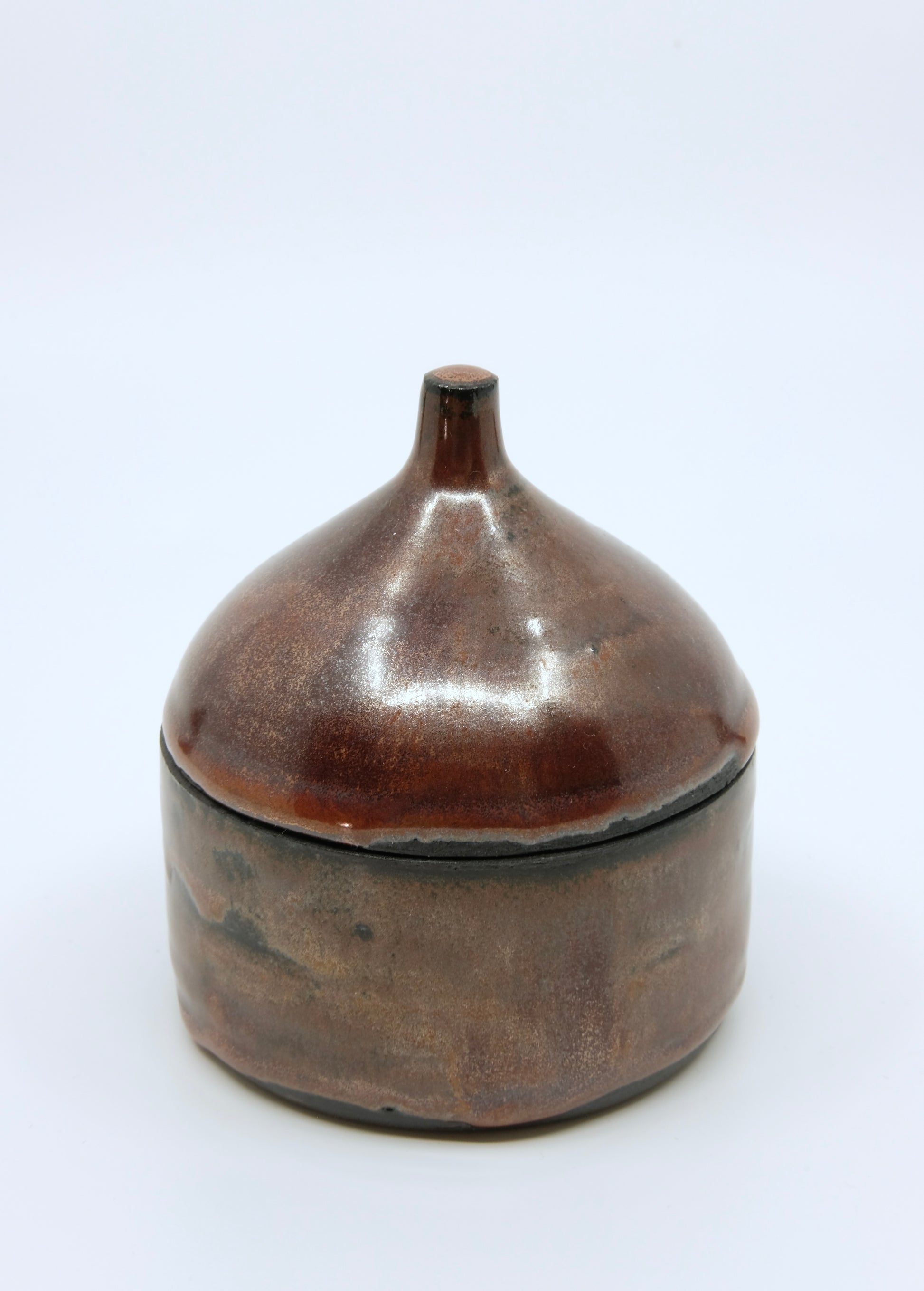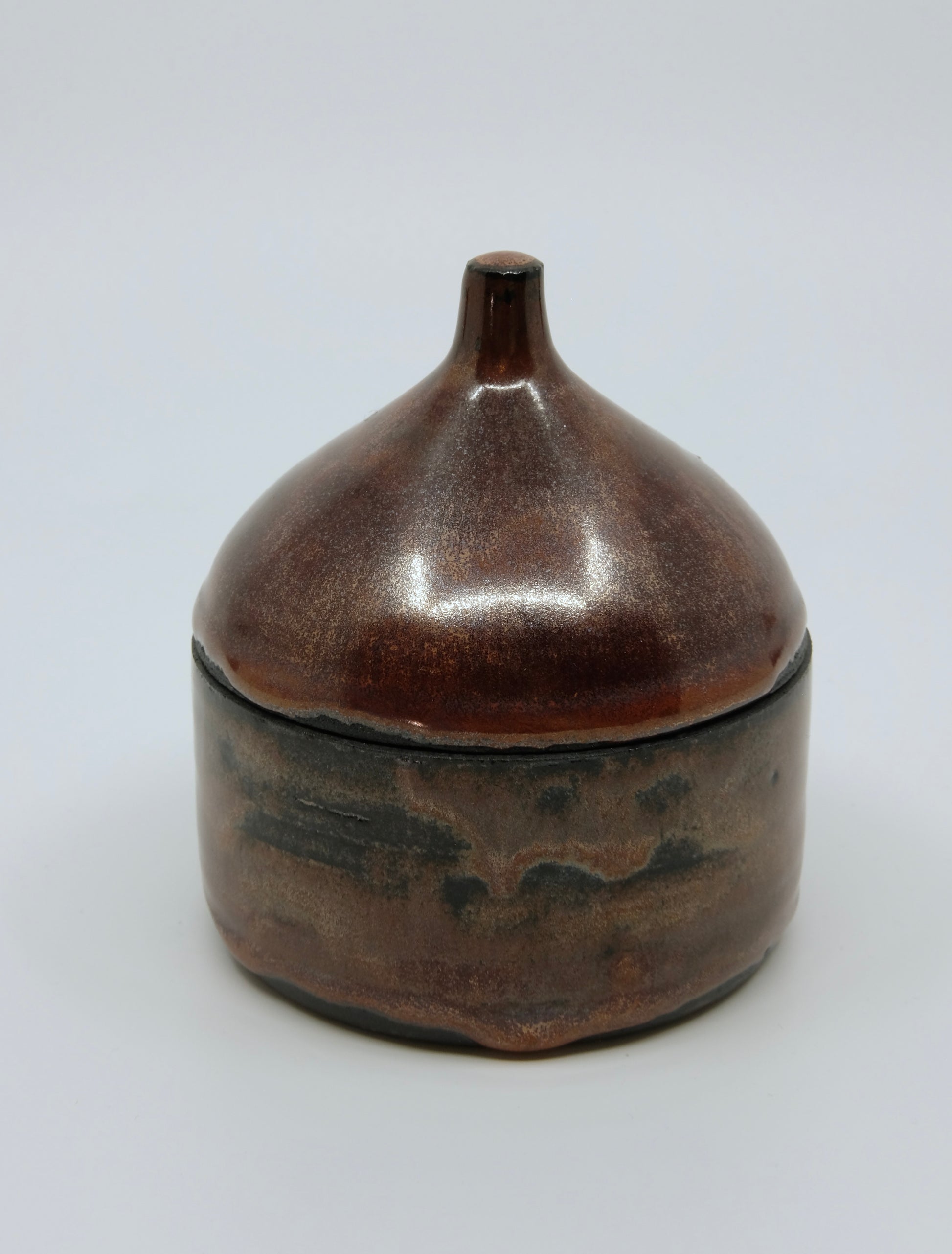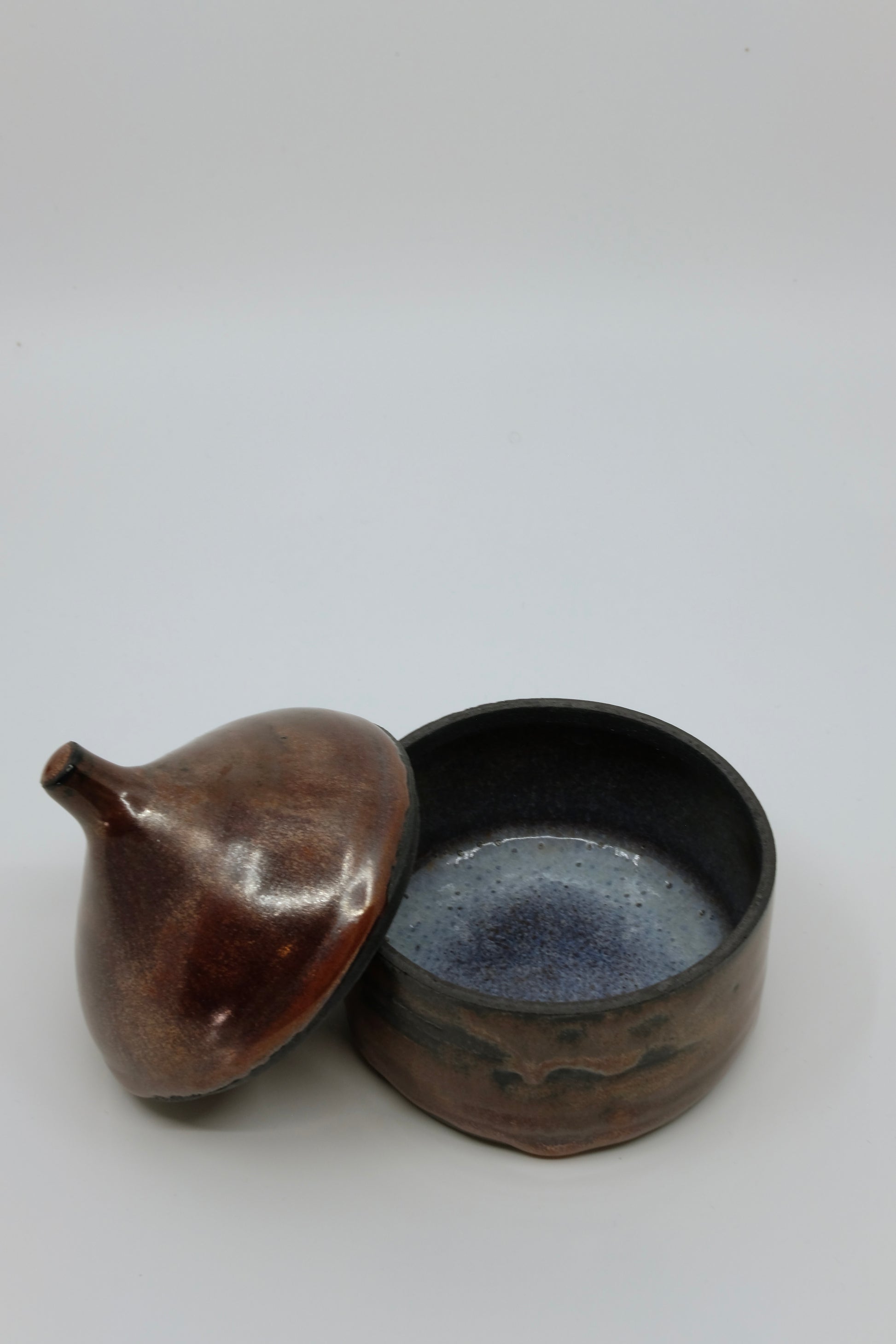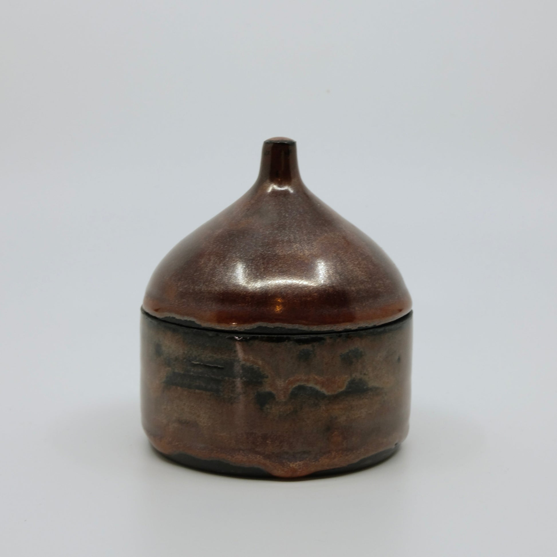 Diese Dose aus schwarzem Ton hat eine ganz besondere Ästhetik: Aussen Dunkelrot mit silbernen Effekten, innen erwartet dich eine kleine Überraschung.