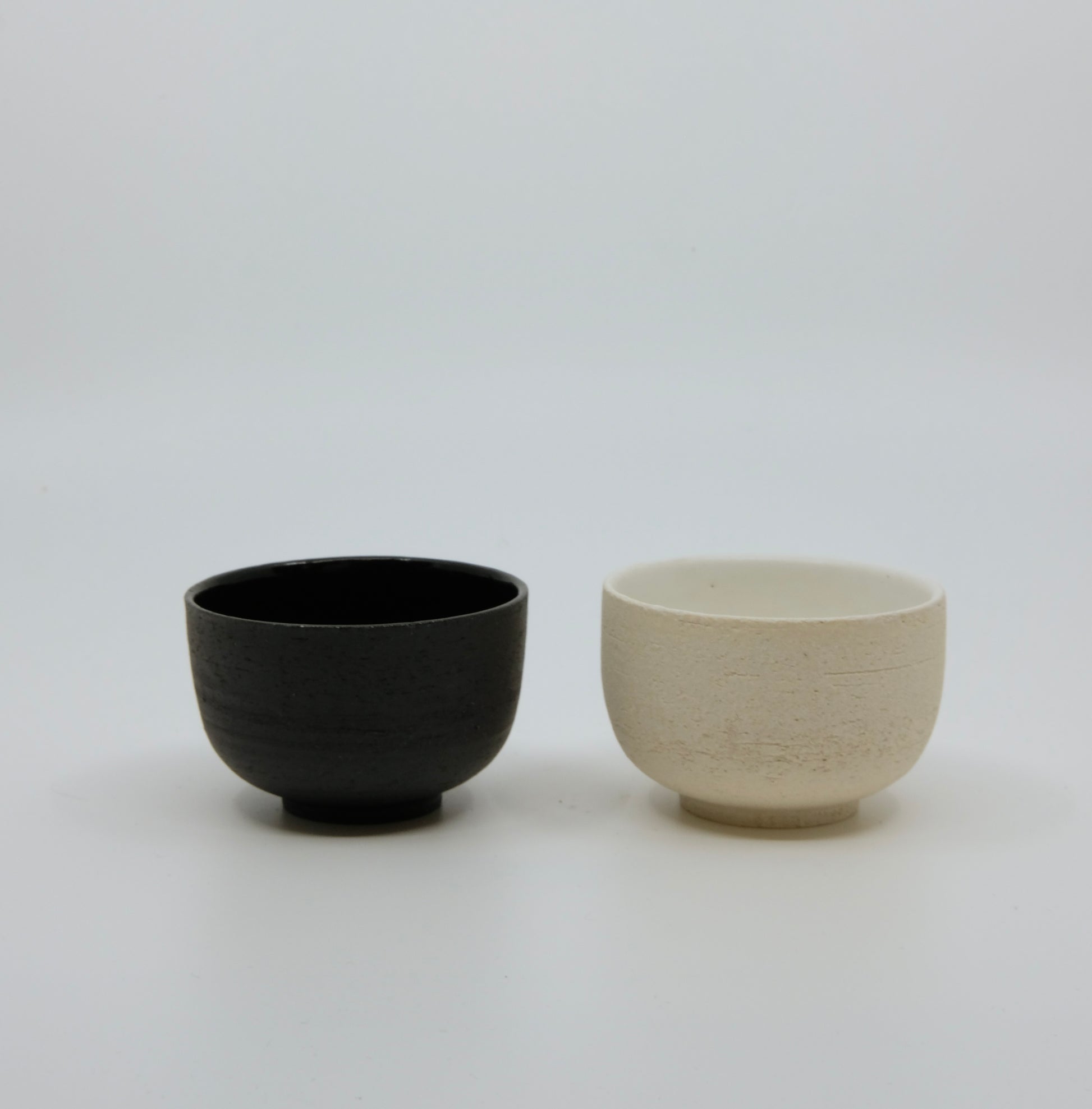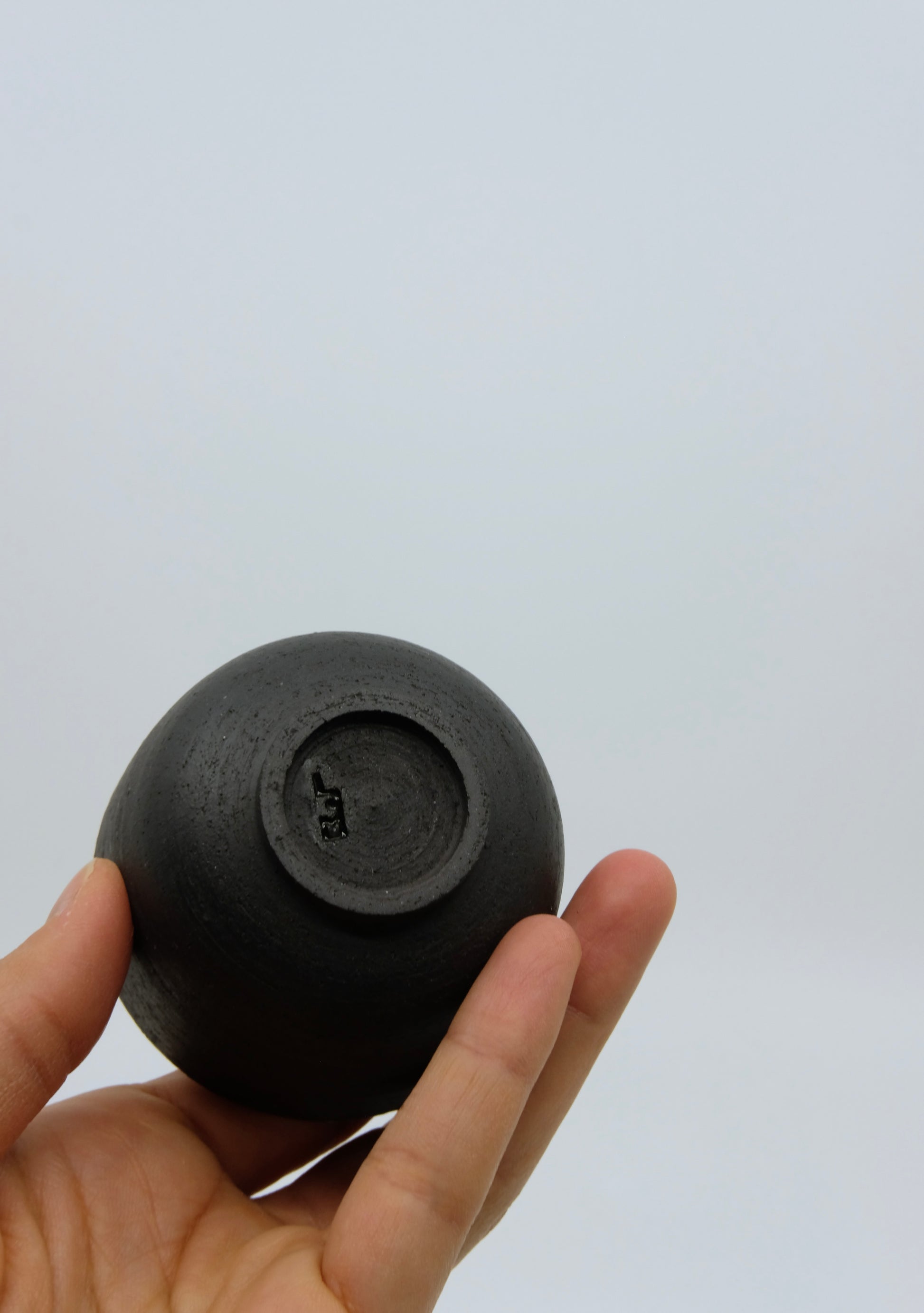 Handgedrehte, mattschwarze Espressotasse aus Ton. Aussen unglasiert, innen glasiert, für den besonderen Kaffeemoment.