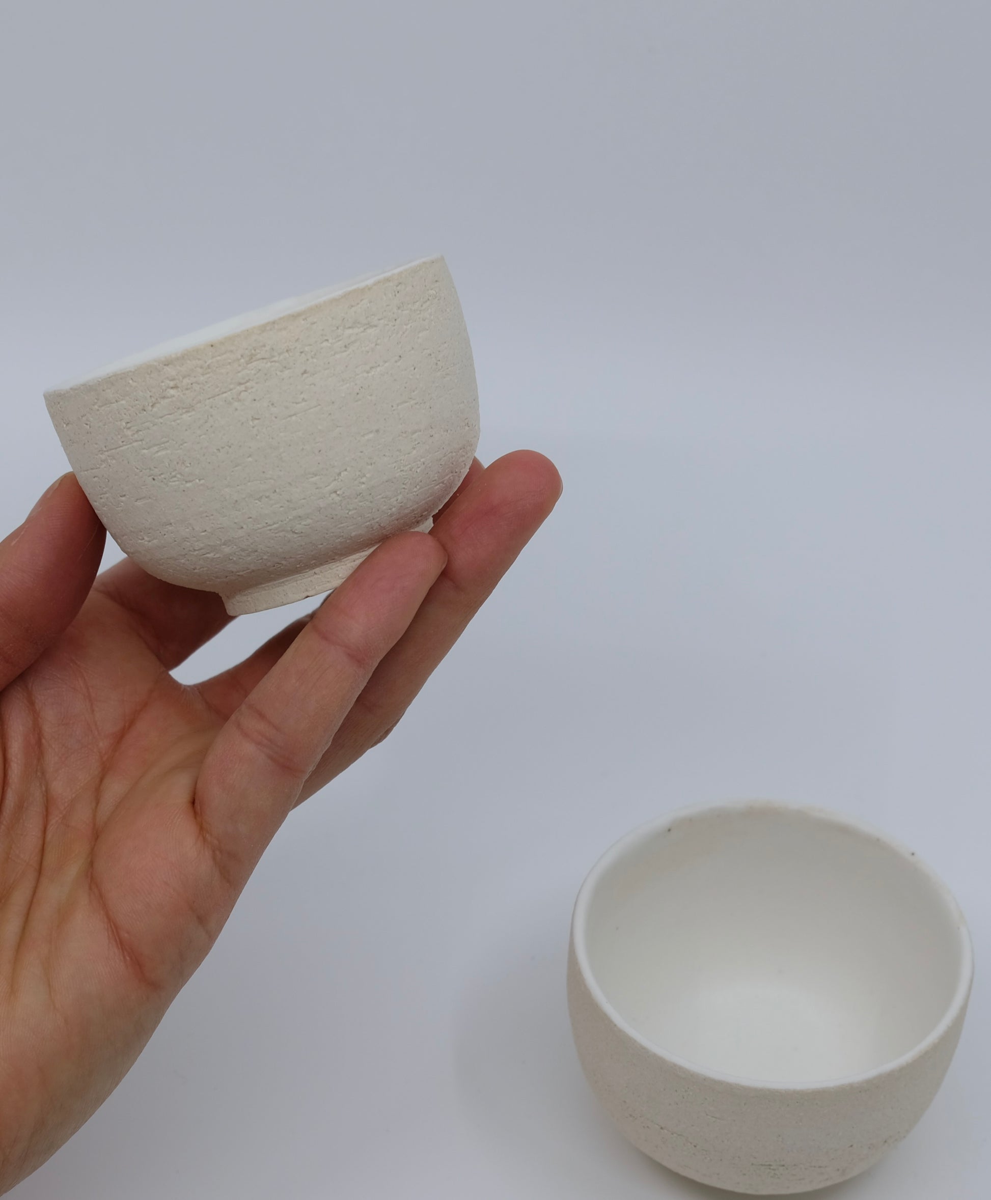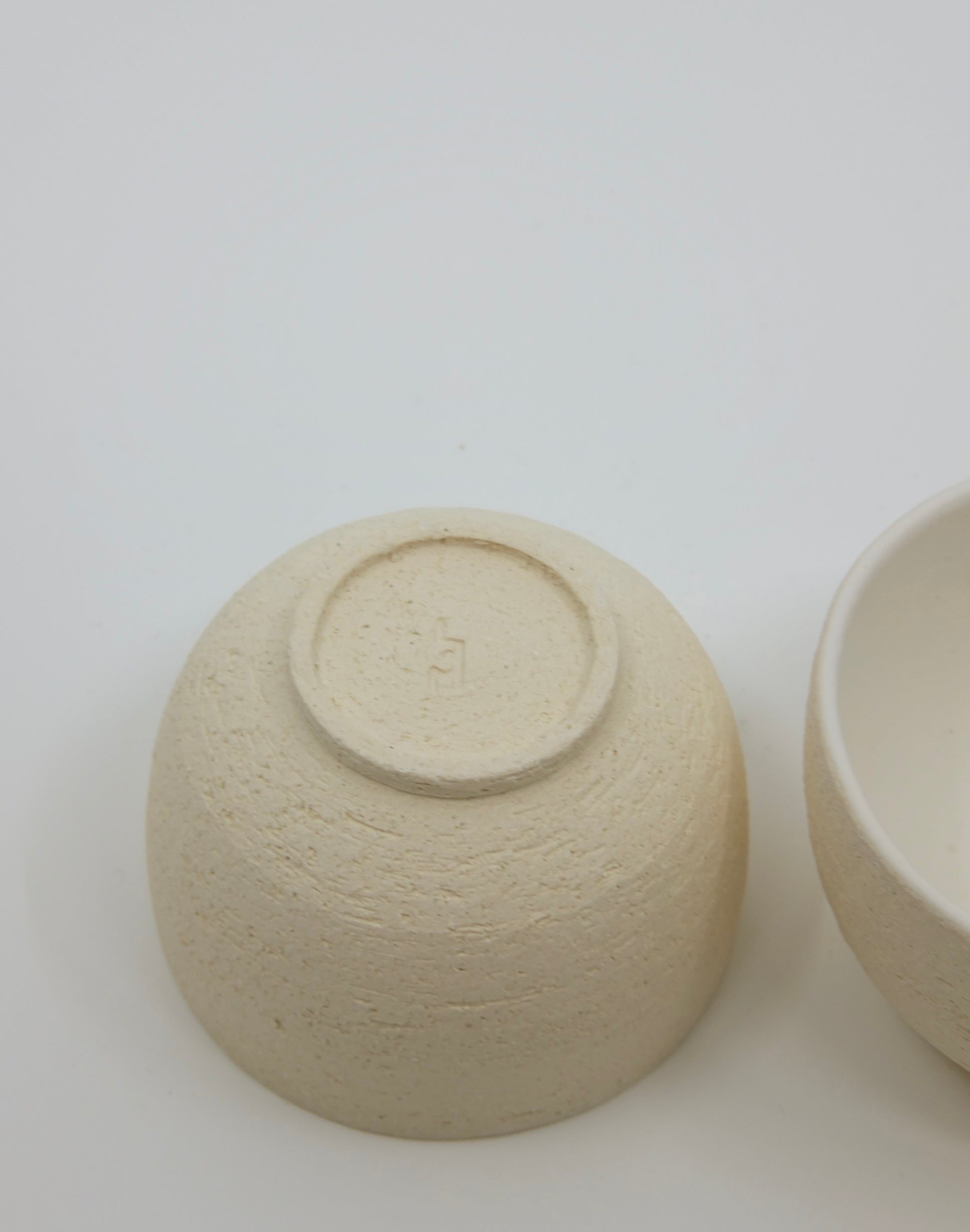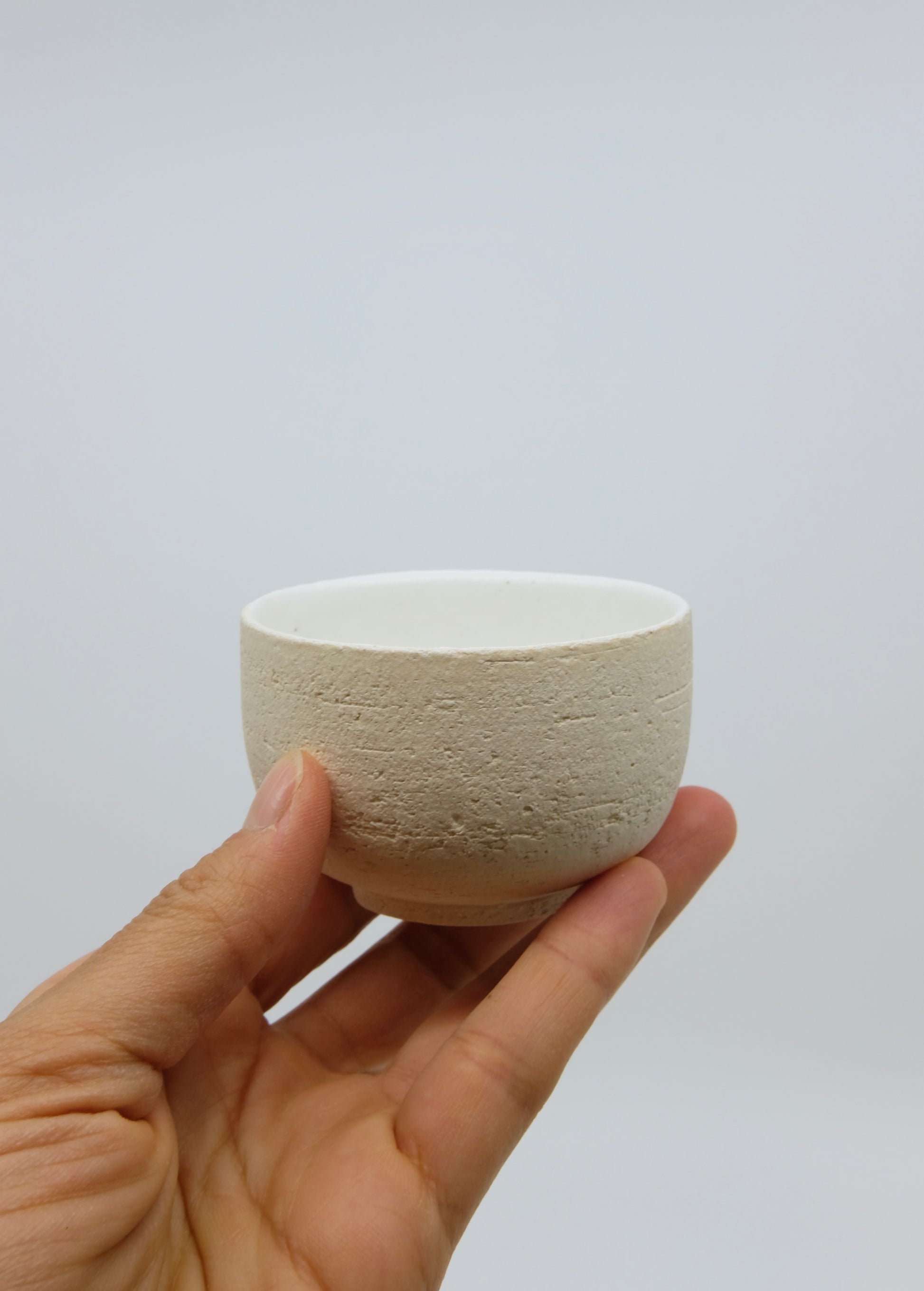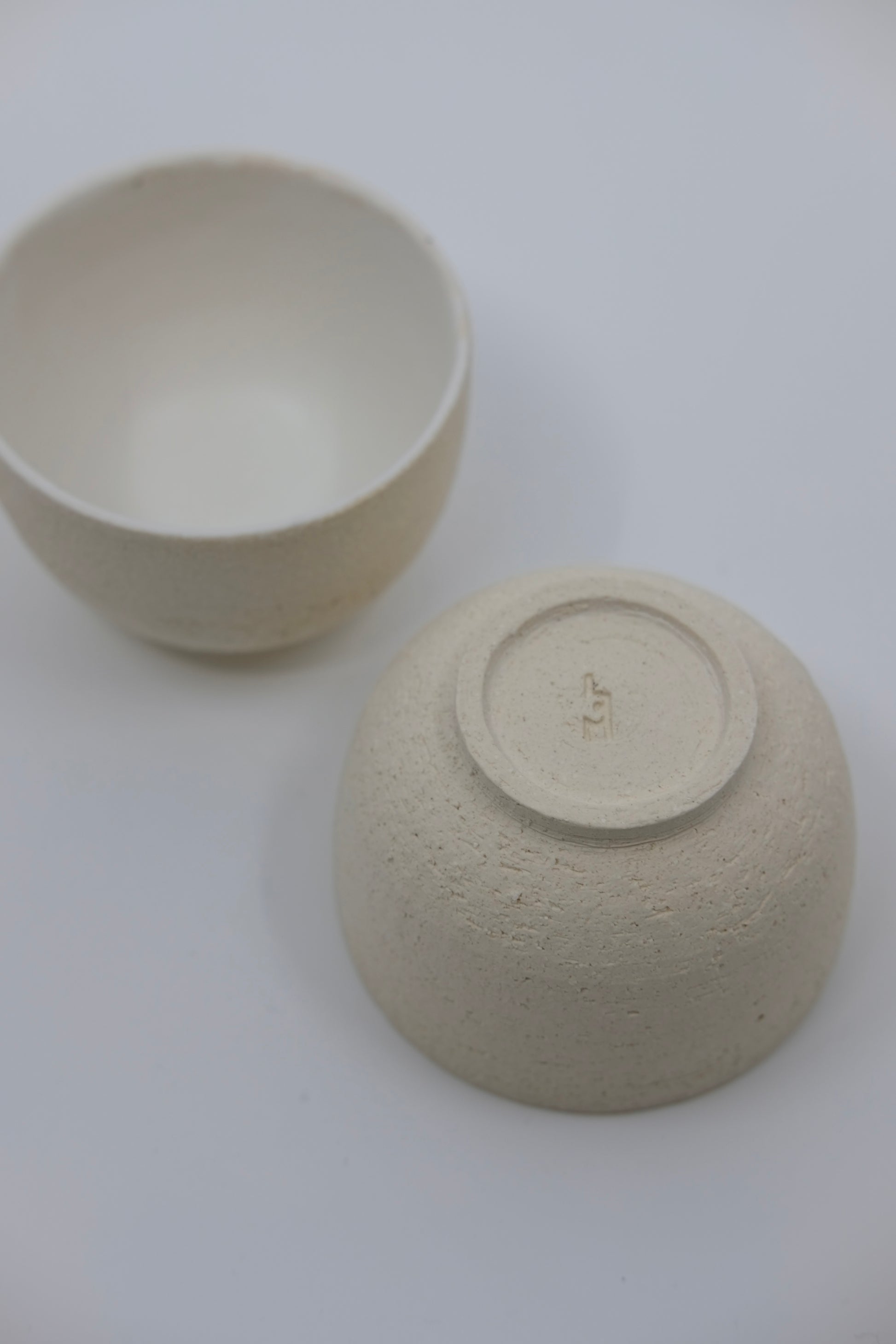 Die aussen unglasierte, handgemachte Espresso-Tasse ist eine haptische Besonderheit. Die innen mattweiss-glasierte Tasse kann unterschiedliche Glasur-Effekte haben (kleine Unebenmässigkeiten), was jede Tasse noch einzigartiger macht.