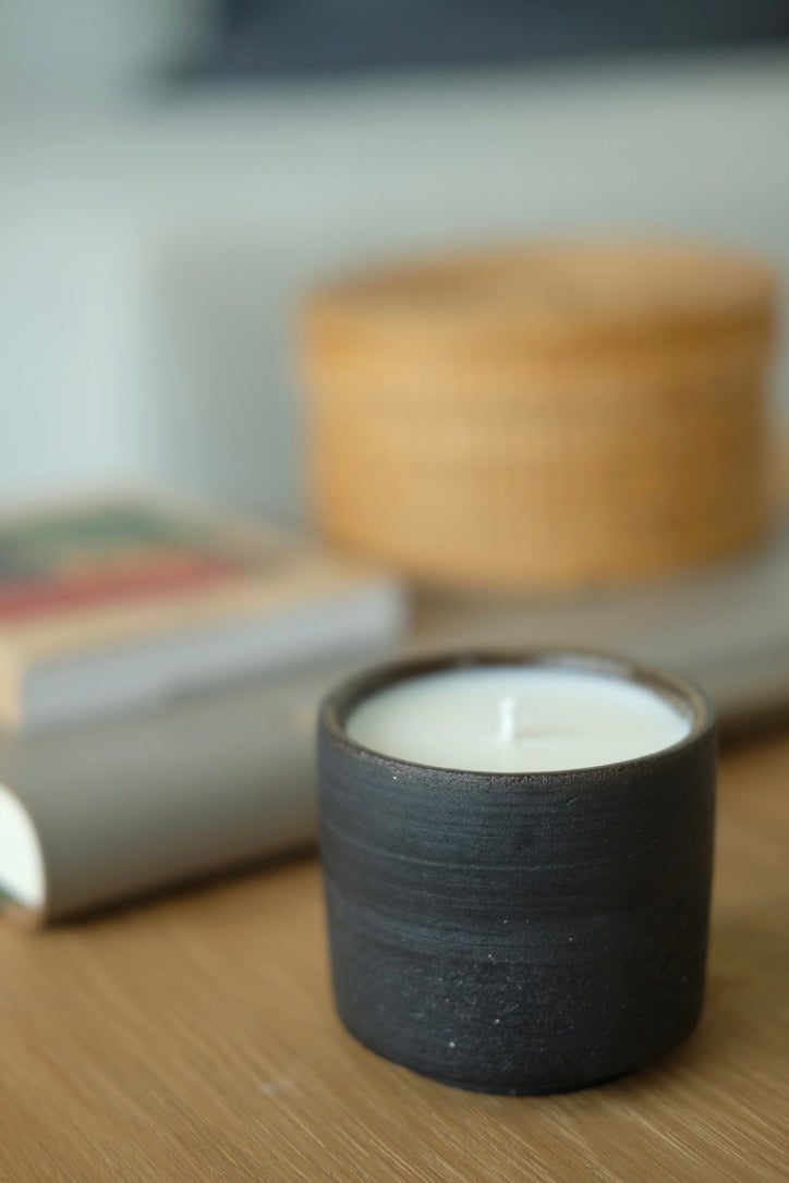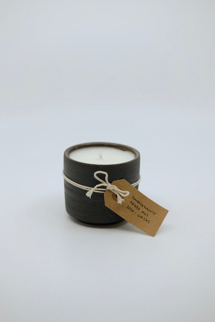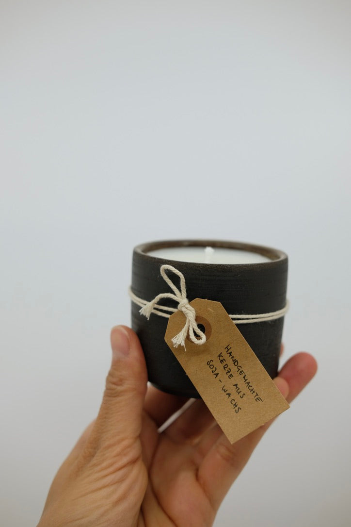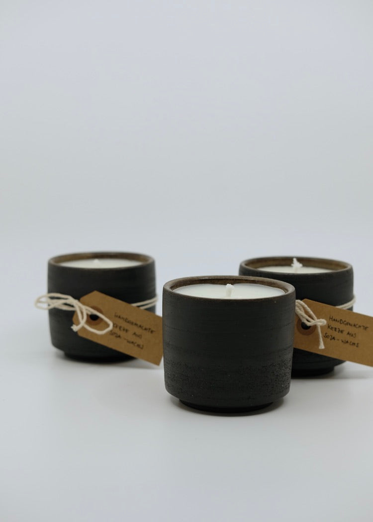 Die mit Sojawachs befüllte Kerze mit Baumwolldocht kann nach dem Gebrauch entweder neu befüllt oder als Kaffeebecher verwendet werden.