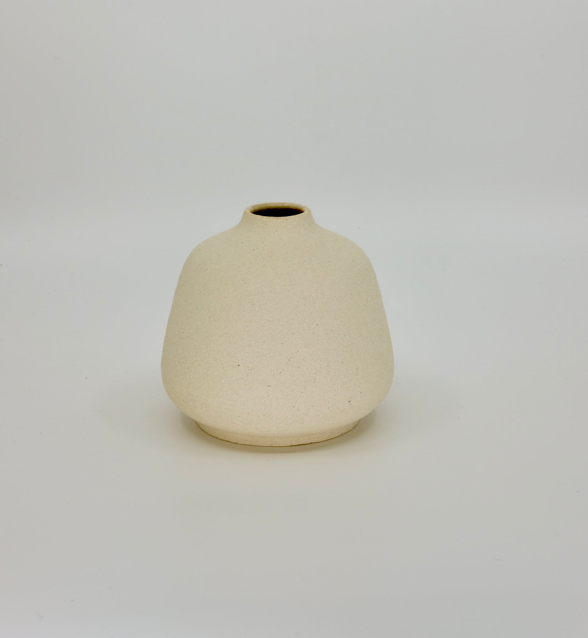 Aussen naturbelassene, innen glasierte Vase aus Ton, handgdreht auf der Töpferscheibe. Spülmaschinenfest und lebensmittelecht.